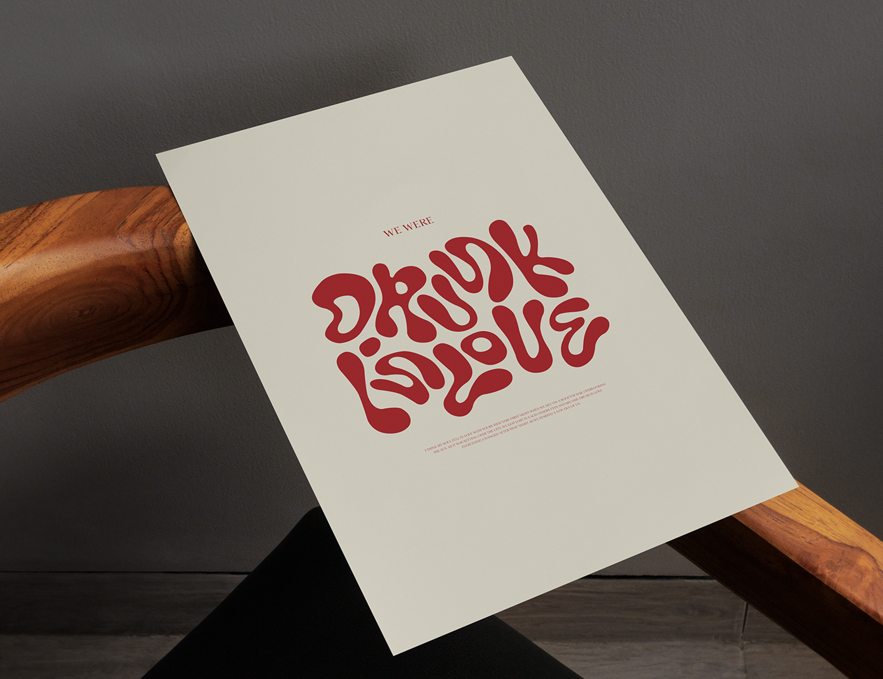 Experimental typography composed of hand-drawn lettering art, digitally created to capture the swirling and bubbly feeling of being 'Drunk in love.' The design seeks to express the energy and intensity of this state. A showcase of my passion for creative typography and hand-drawn letterforms, where each letter comes to life, conveying visual emotion rather than just a message.